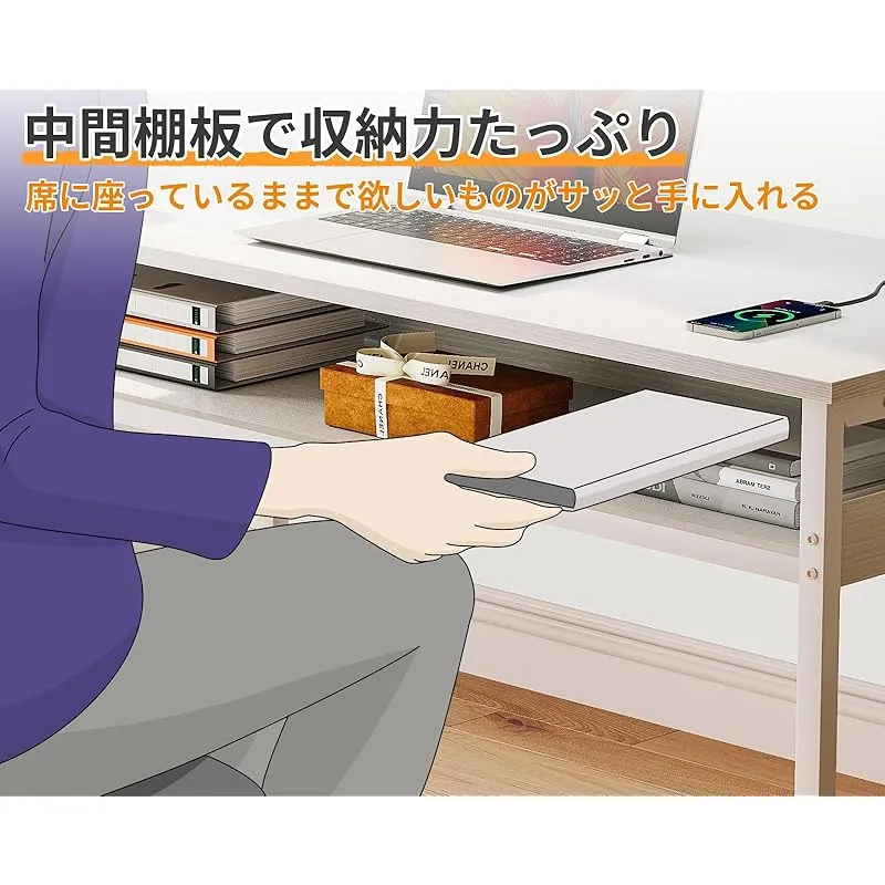 【ものをすぐに取り出せる中段収納】デスクの中間には幅73・奥行27.5cmの収納スペースがあり、身近に置きたい物品がちゃんと収納でき、欲しいものがサッと手に入れる。落下防止バーも付いているので安全にご利用いただける。限られたスペースで効率的な収納が実現できる。