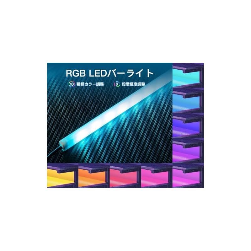 【RGBバーライト付き、お部屋の雰囲気が変わる】ゲームテーブルには10段階調色・9段階調光のLEDバーライトを搭載しており、気分やシーンに合わせてカラーを切り替えることができる。より頑丈で長持ちやすい。臨場感にあふれるゲーム雰囲気だけではなく、温かみのある学習・作業環境も作り出せる。