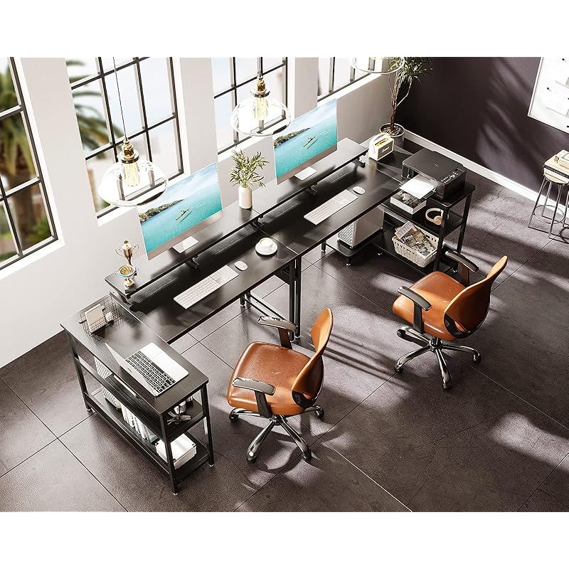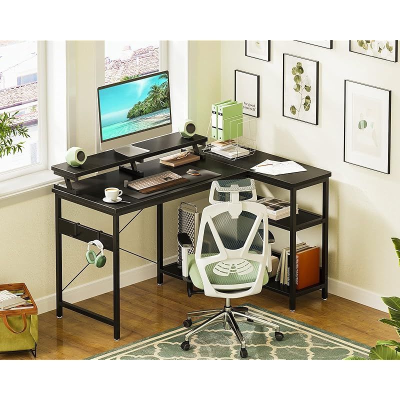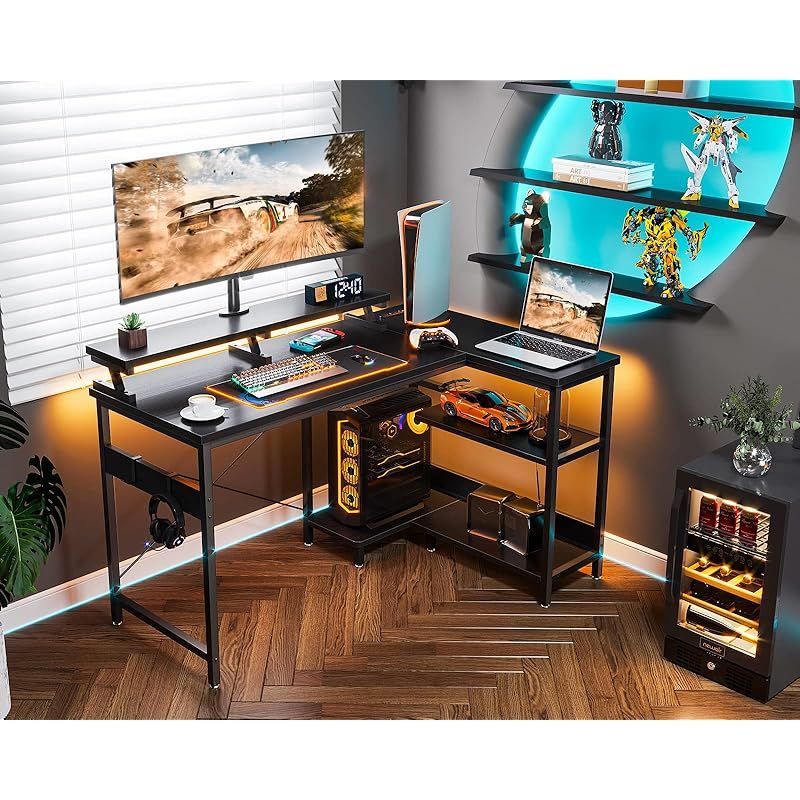 【ゲームと仕事両立】L字ゲーミングデスクは実用性が高く、ゲームプレイ、在宅勤務、勉強机、書斎机など様々なシーンで大活躍!お部屋のレイアウトに合わせてラックの位置を変更できます。モニター台を利用し、目線をあげて作業時の姿勢を改善し、テレワークが快適になり、作業効率も格段に上がります。