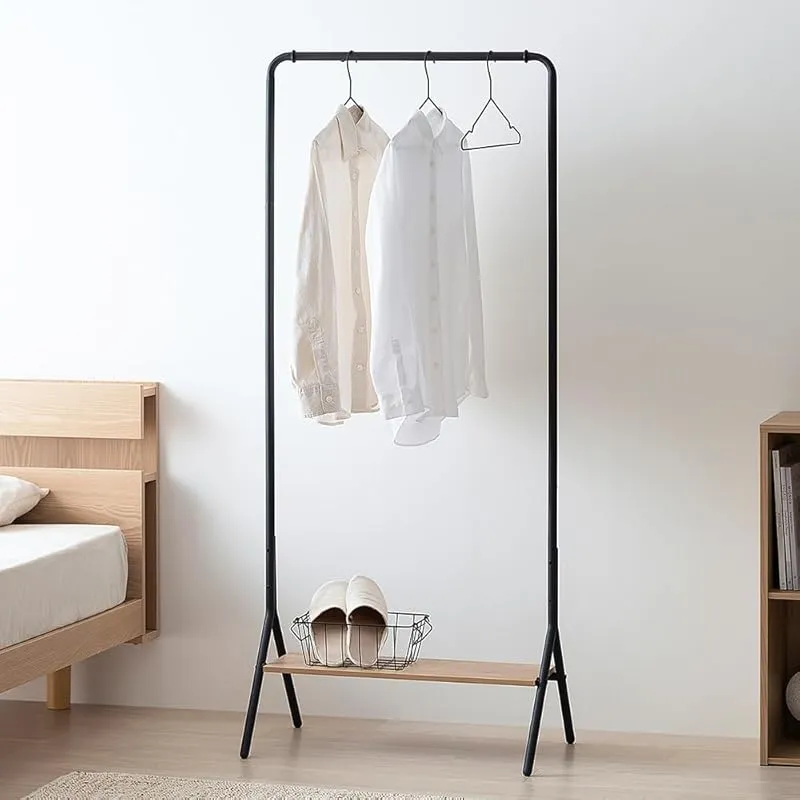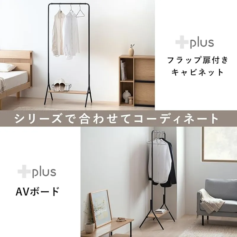 ハンガーパイプには掛ける収納、棚板には置く収納、またはディスプレイ