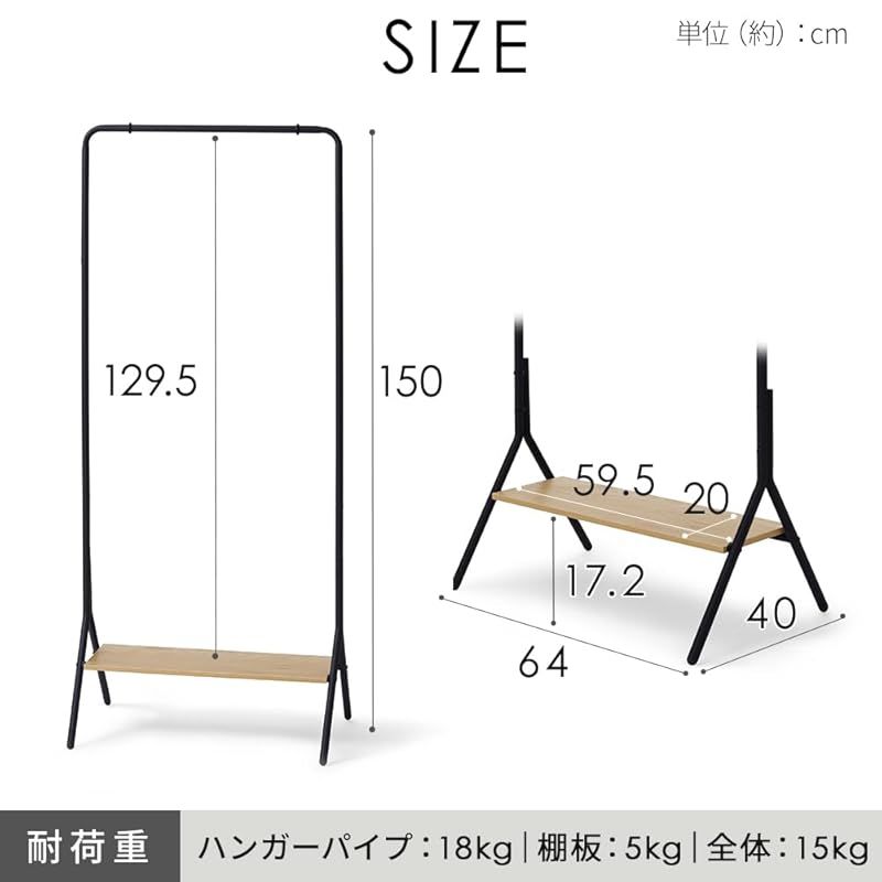 商品名:アイリスオーヤマ スペパ ハンガーラック コートハンガー おしゃれ 北欧 スリム 棚付き ハンガーラック ナチュラル/ブラック アイリスオーヤマ HPI-640 HIROBIROシリーズ
