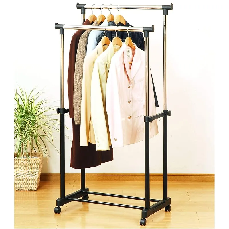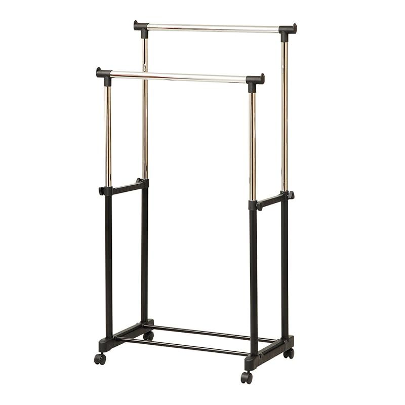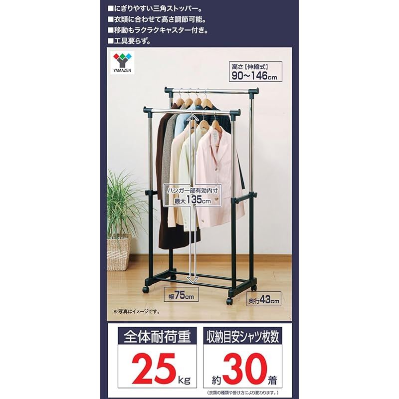 商品名:山善(YAMAZEN) ハンガーラック ダブル キャスター付き 全体耐荷重25kg ブラックメタルハンガー 幅75×奥行43×高さ90-146cm 組立品 ブラック BH-W