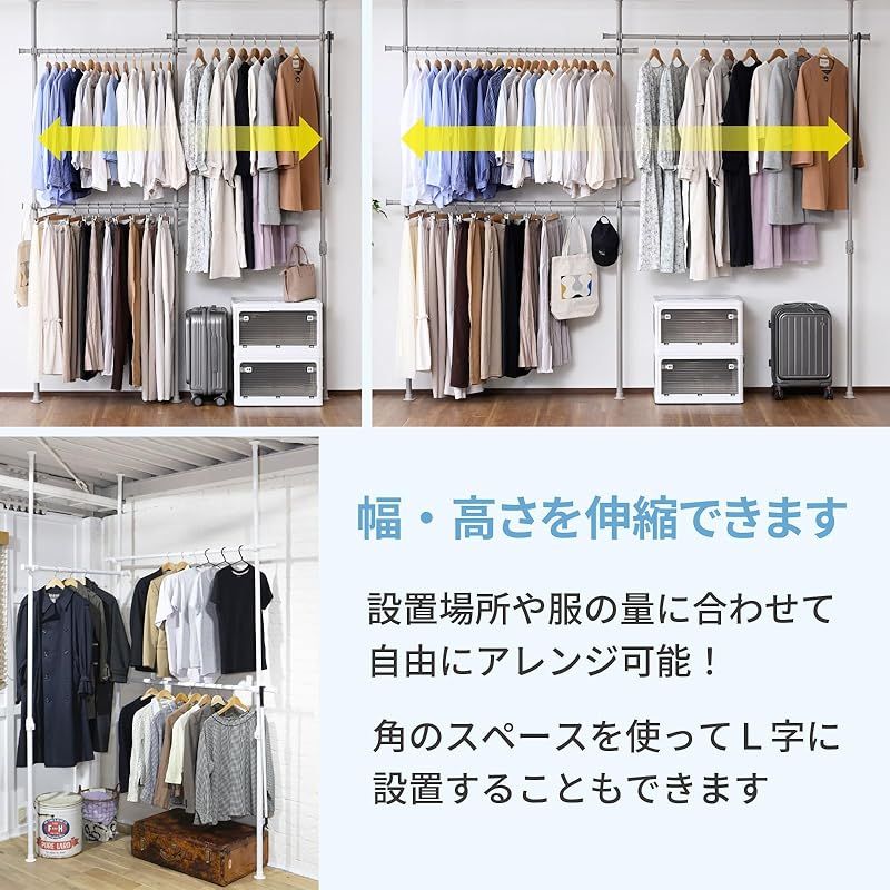 【タテのスペースを有効活用】突っ張って設置するので場所をとらず、天井近くのデッドスペースまでタテの空間を有効活用できるハンガーラックです。シャツは約135着収納でき、お部屋の壁面を大容量クローゼットのように使えます。