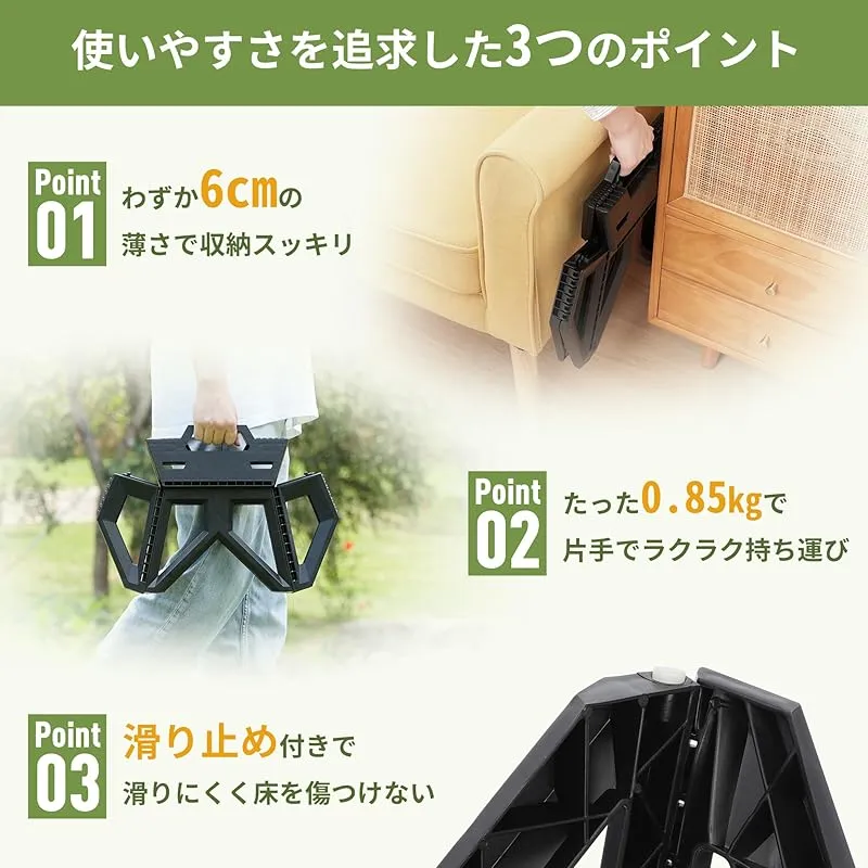 【折りたたみ後わずか6cm】収納時は軽く押すだけで約6cmの厚さに折りたたむことができます。家具の間、ドアの後ろ、ベッドの下に保管してスペースを節約します。ハンドルが付いており、重さは約0.85kgと軽量なので、片手で簡単に持ち運ぶことができます。注意:折りたたむときや開くときに指を挟まないように注意してください。