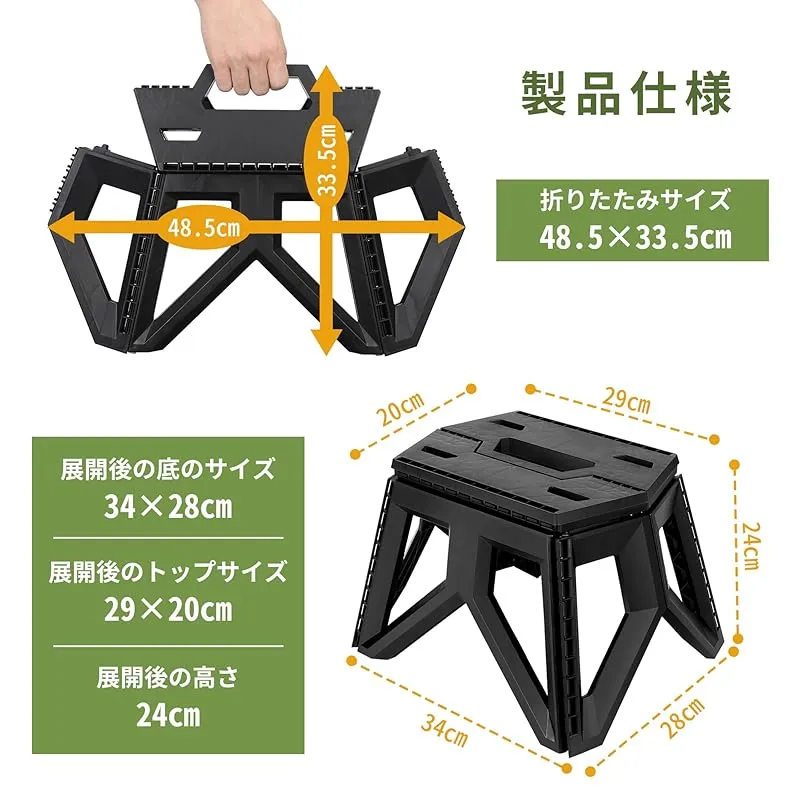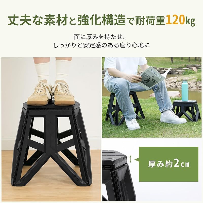 【様様な不整地対応】 踏み台 折りたたみ スツール 耐荷重120kg 高さ24cm 強化構造 チチロバ(TITIROBA) アウトドアチェア 軽量 コンパクト アウトドア 室内 屋外 洗車 玄関 ブラック