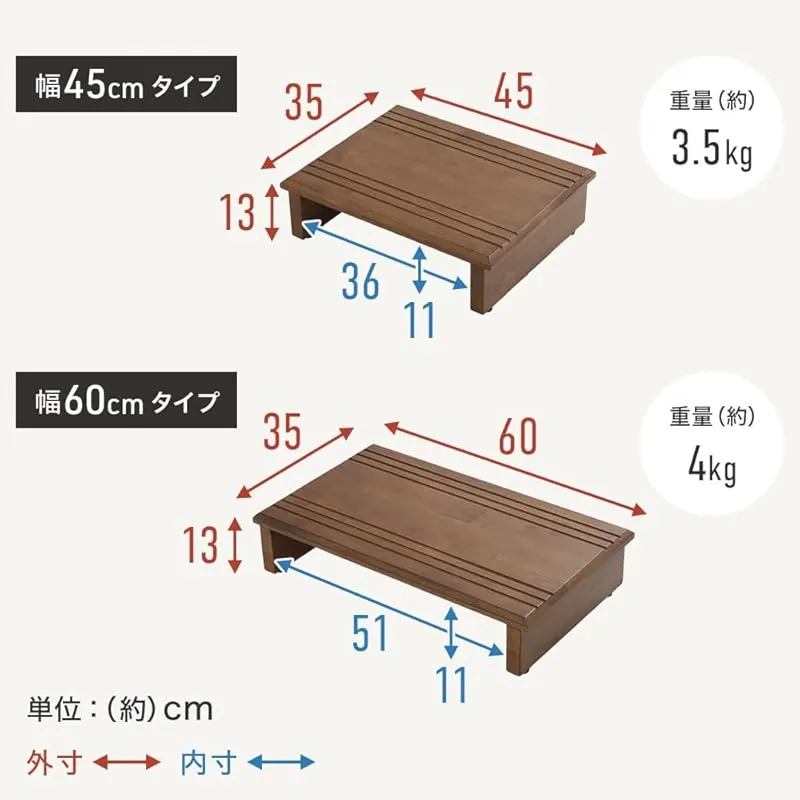 商品名:iimono117 踏み台 木製 玄関台 (幅45/60/90/120cm) 高さ13 耐荷重 100 おしゃれ 玄関 台 段差ステップ 天然木 製 ひざ 腰 負担軽減 子供 高齢者 ペット (ナチュラル, 幅45)