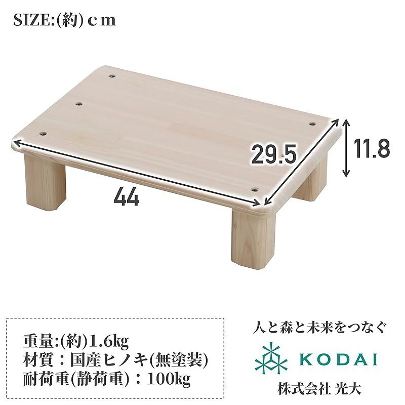 【耐荷重100】 日本製 ひのき ステップ台 玄関 子供 44×29.5×11.8cm のれるん台 S型 330364