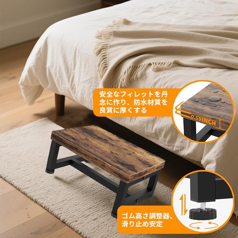 【滑り止め設計】踏み台 こども底には滑り止めパッドが付いており、傾けたり移動したりしてもスクレーピングツールが床を傷つけるのを防ぎます。 このフットスツールは美しい木目だけでなく、どんな家の装飾にもマッチするヴィンテージ感のあるスタイリッシュなデザインも備えています。