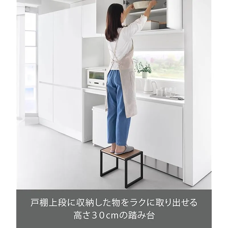 手の届きにくい吊り戸棚への収納や電球交換など高い位置での作業がしやすい高さ30cmの踏み台。洗面台では小さなお子様の手洗い、うがいのサポートに。キッチンではスツールや置き台としても使えます。