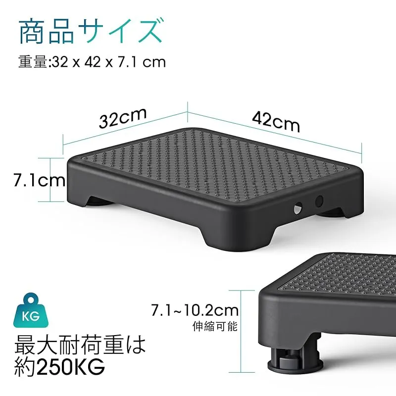 【段差解消・伸縮可能】本体幅42*奥行き32*高さ7.1~10.2cm省スペースのコンパクト踏み台です。ちょうどいい9.5 cmの高さ、玄関や床の段差が解消できます。 ※踏み台は長方形に設計されています。 踏む時は、足を真ん中の位置に近づけ、端の位置を踏まないようにしてください。