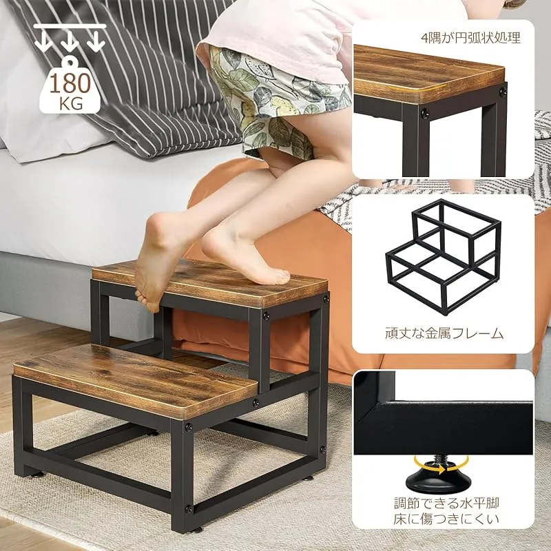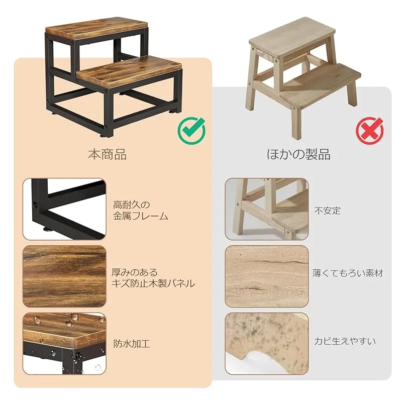 簡単な組み立て: ネジだけで簡単に組み立てできるデザイン。説明書が付属しており、一人でも10分間ぐらい組み立てられます。大人と子供の両方が様々なシーンで利用できます。キッチンやリビングルームの高いキャビネットのアイテムを取るために便利です。おむつトレーニングツール、ペットステップや植物スタンドとしても活用できます。