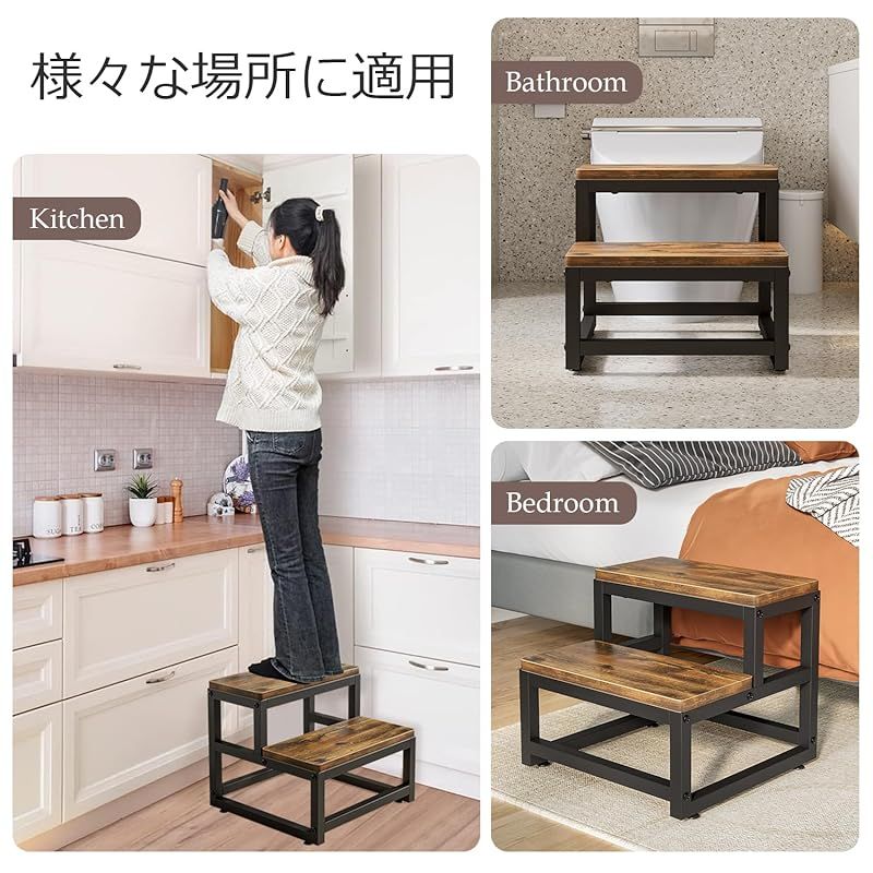 多機能2段チェア: 高齢者、ペット、大人、子供に適用の理想的なソリッドステップスツールです。2段のデザインでさまざまな高さに対応可能。ベッドルーム、キッチン、バスルーム、庭などの家具として最適です。踏み台としてだけでなく、休憩時にはチェアとしても利用できます。アイデア次第で使い方が多様になります。
