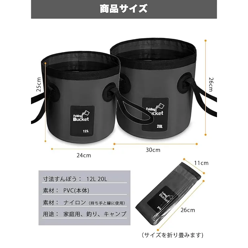 【大容量バケツ】容量:12L サイズ:20*30cm 収納サイズ:26*11cm 耐熱範囲:-20℃~80℃ 持ち運び 畳めるデザイン 重量:170G