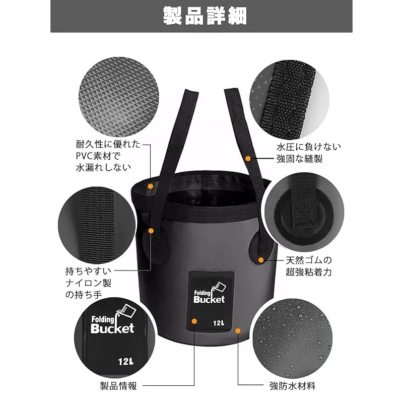 【安心バケツ】安全な高品質PVC素材を採用で、清潔と乾燥は快速です、内側に耐久性が優れた繊維を使用して、水漏れを防止することができます。持ち手の部分は堅くて、たくさん入れても持ちやすい作りです 。