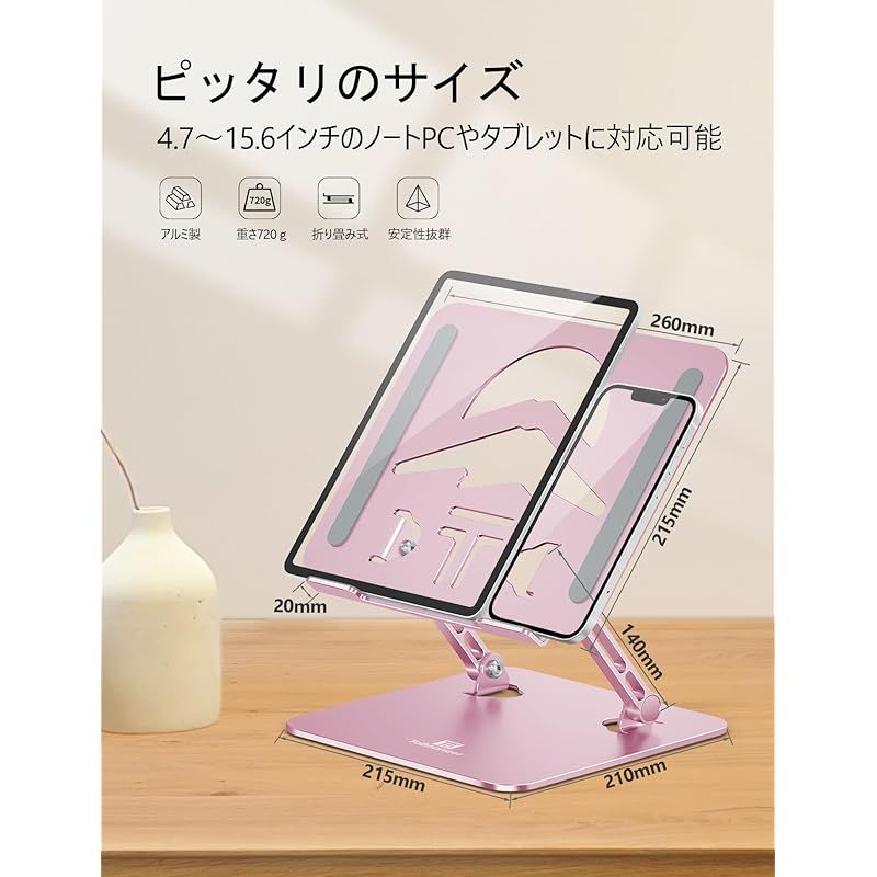 商品名:ツビワ(ToBeoneer) ノートパソコンスタンド PCスタンド タブレットスタンド laptop stand 液タブホルダー 折り畳み式 卓上 高さ角度調整 人間工学 姿勢改善 在宅ワーク アルミ製 ZOOM会議 Macbook,iPad,15.6インチま