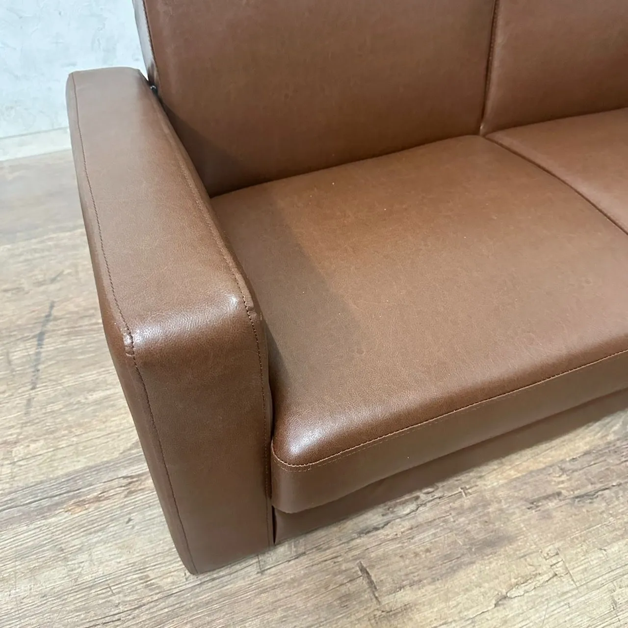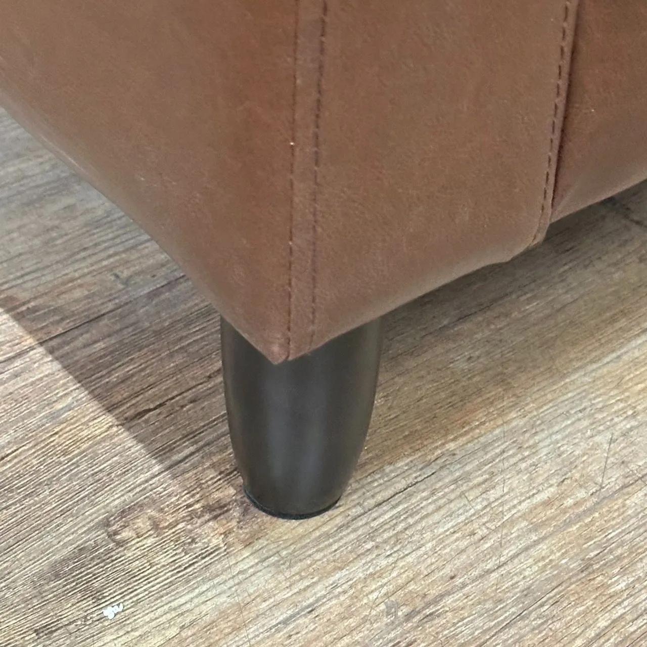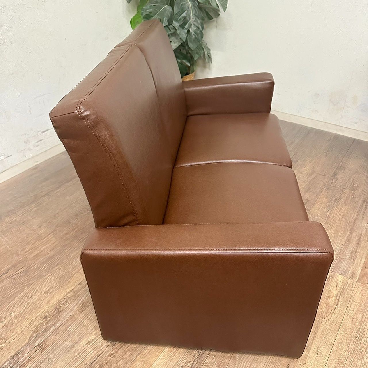 ■ ワンルームにも置きやすいコンパクトサイズだけど座面は広く確保。上品な色合いの張地はお手入れのしやすい合成皮革を使用しています。