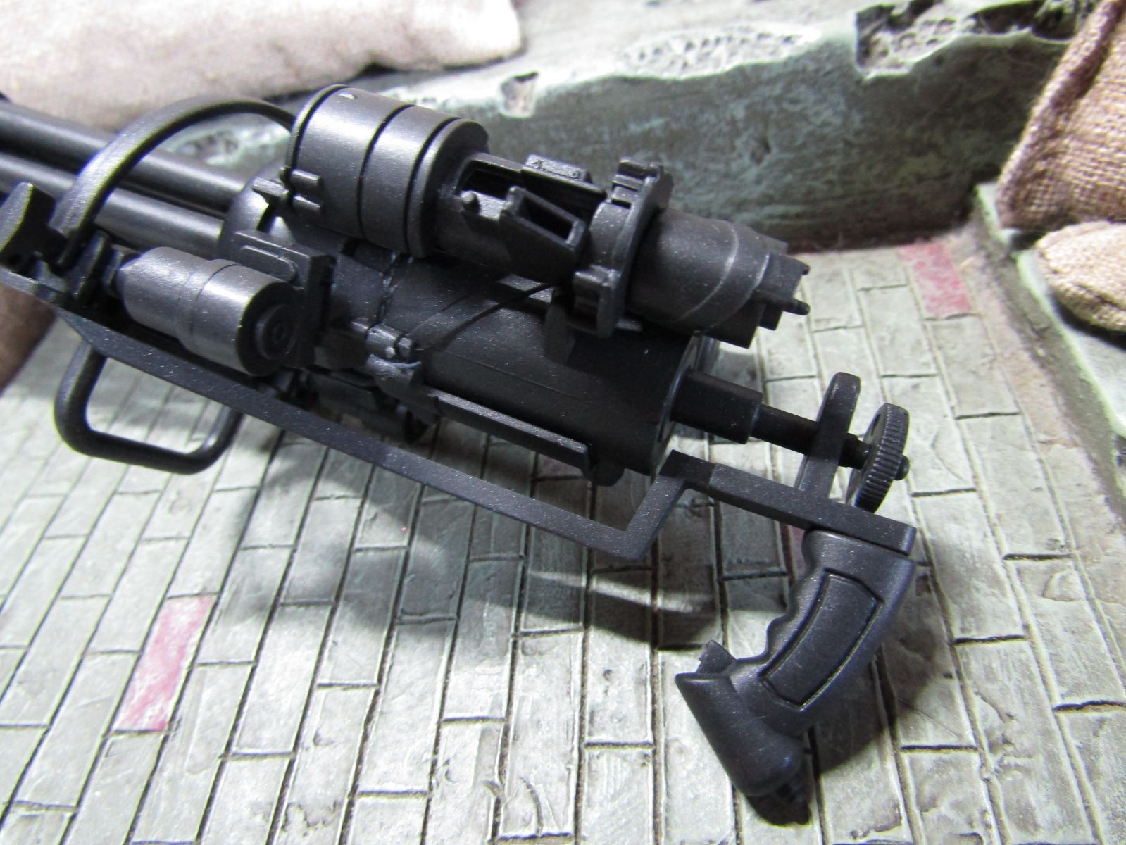 1/6スケール GIジョー ミニガン Minigunは、ゼネラル・エレクトリック社が開発した7.62mm口径のガトリング銃ロング仕様。アメリカ陸軍ではM134として制式化した。 ジェット機の登場とともに航空機関砲の火力向上の必要が高まったのを受けて、ゼネラル・エレクトリック社はガトリング砲に着目して開発を進めたモデル! (実物の説明・仕様)
