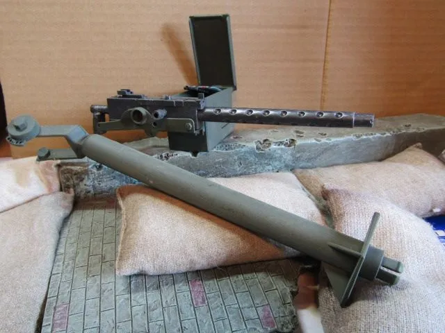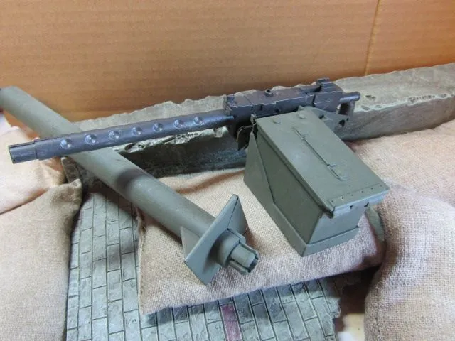 ■ 全長16.8cm程 銃身9cm 弾奏BOX 5cmX3cmX2.5cm スプリングフィールド弾 7.62mm弾 弾奏ベルト付属 WW-ⅡUSウイルスJeep装備用支柱アームスタンド付属