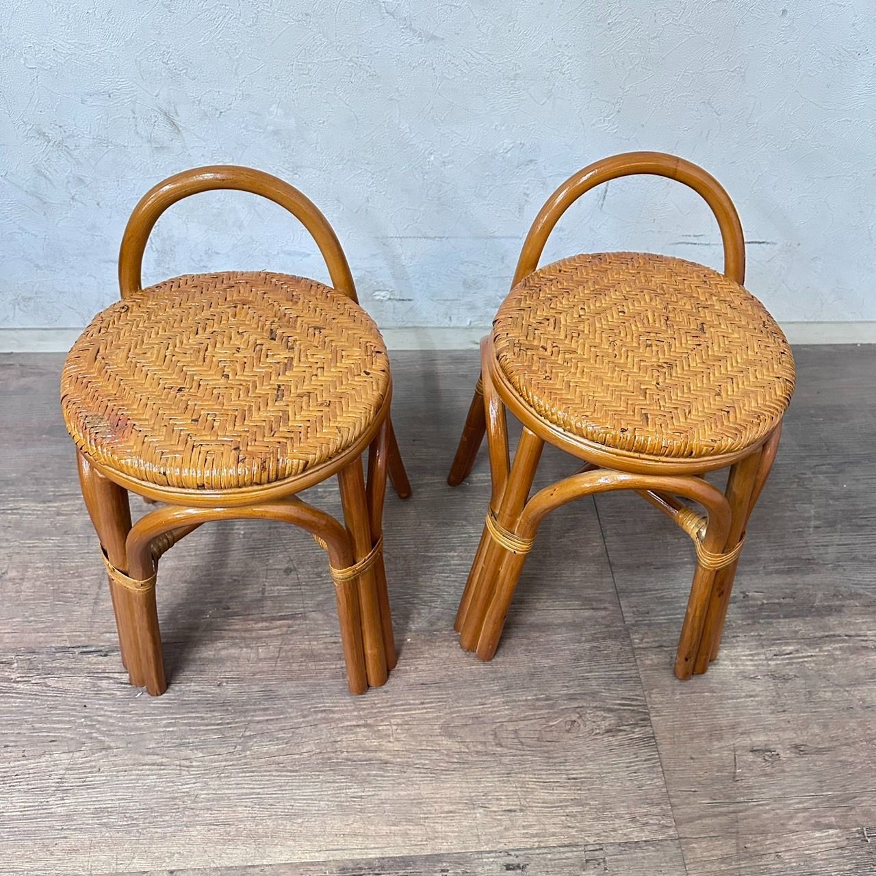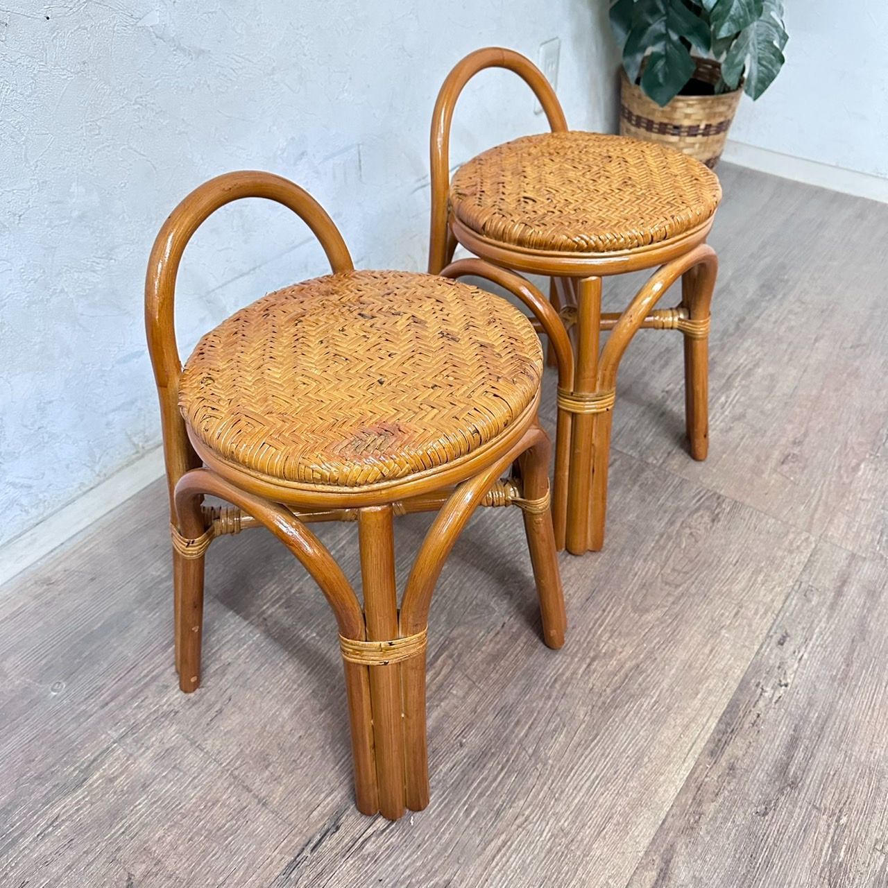 送料無料! E 2脚セットアジアンテイスト 籐 座椅子 イス スタッキングスツール FF17588