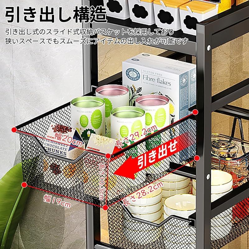 使いやすいスライド式: 引出式隙間ワゴンは、付属の天板は、いつでもサイドテーブルとして使用でき、追加の収納スペースを提供します。籠下が、メッシュで空気通りが良いながら、保管されているアイテムを視覚的に確認できるため、取り出しやすくなっています。滑り止め設計で、収納バスケットの端が10cm高くなっており、アイテムの落下を防ぎ、キッチンを清潔に保ちます。