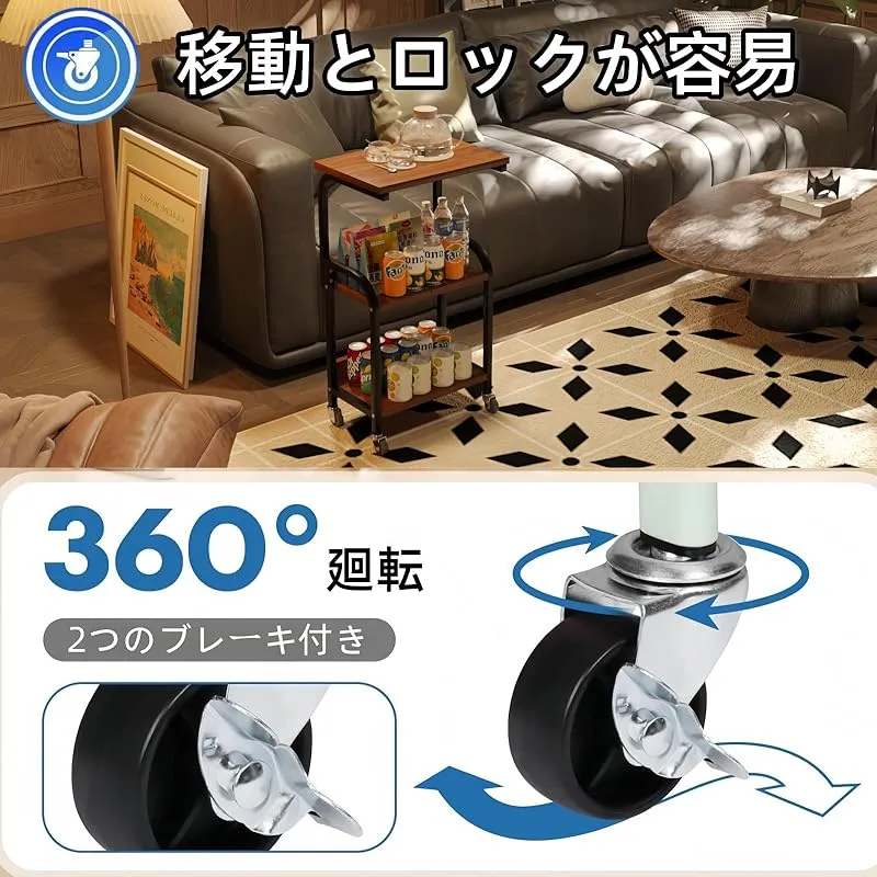 3.[移動とロックが容易]このキッチンカートには4つのキャスターが装備されており、そのうち2つにはブレーキが付いており、家の周りのどこにでも簡単に移動することができます。慎重に設計された筐体は、必要なものが落下するのを防ぎながら、移動しやすいように設計されています。