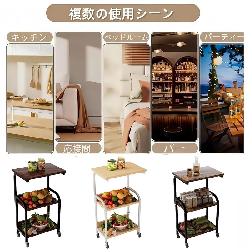 【カウンタースペースを広げる】食材、ジューサー、ボウル、マグカップ。。。すべての調理用品が乱雑にカウンターに置かれており、おいしい料理を用意する場所はありません。今、このキッチンカートはすべてのものを囲んで、あなたの調理スペースを回復することができます。