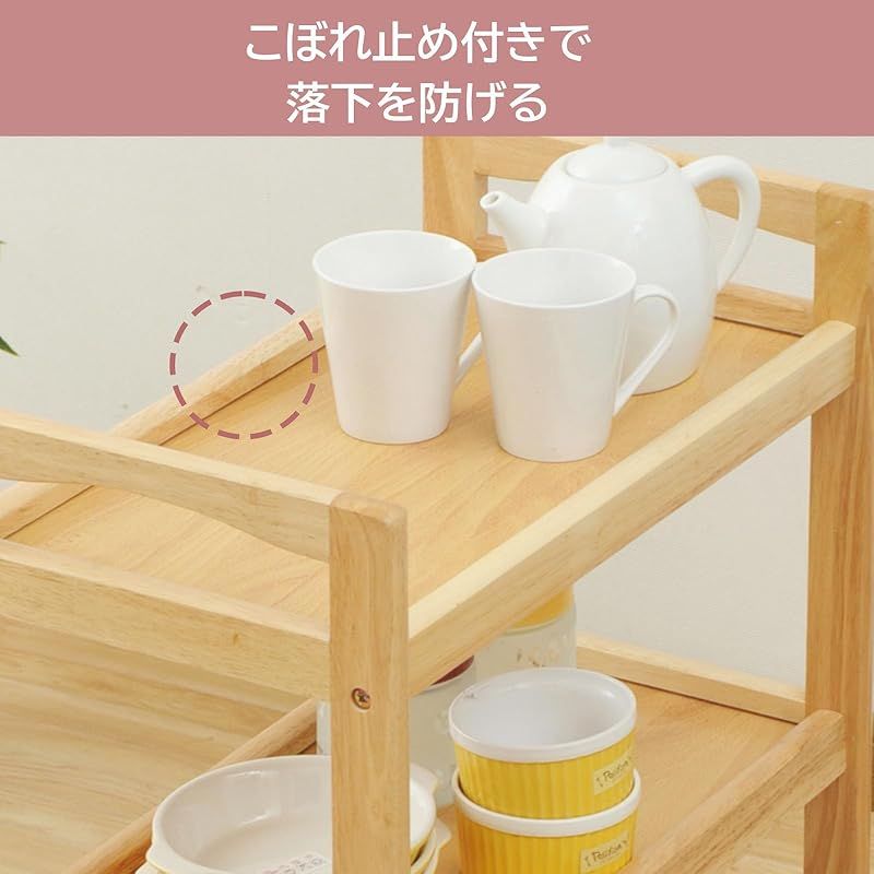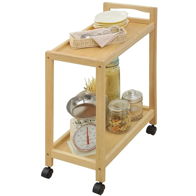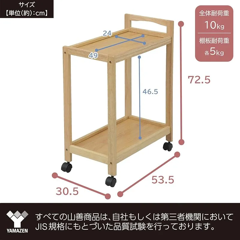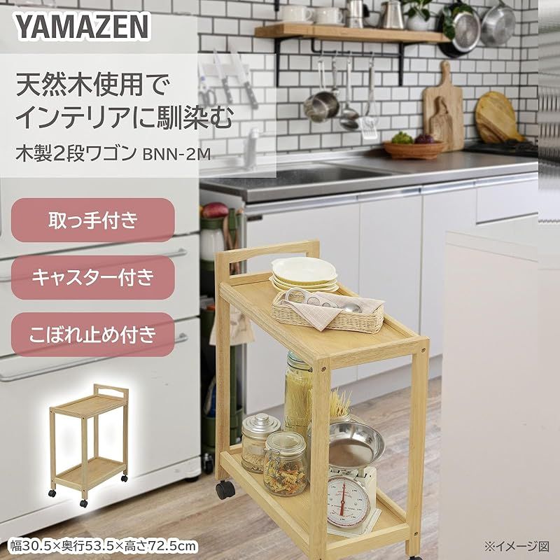 商品名:山善(YAMAZEN) ワゴン キッチンワゴン キャスター付き 2段 幅30.5×奥行53.5×高さ72.5cm キッチンカウンター 天然木 組立品 ナチュラル BNN-2M(NA)