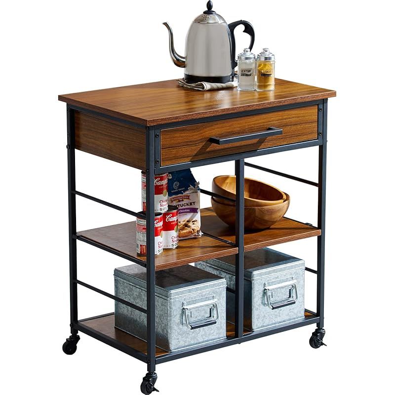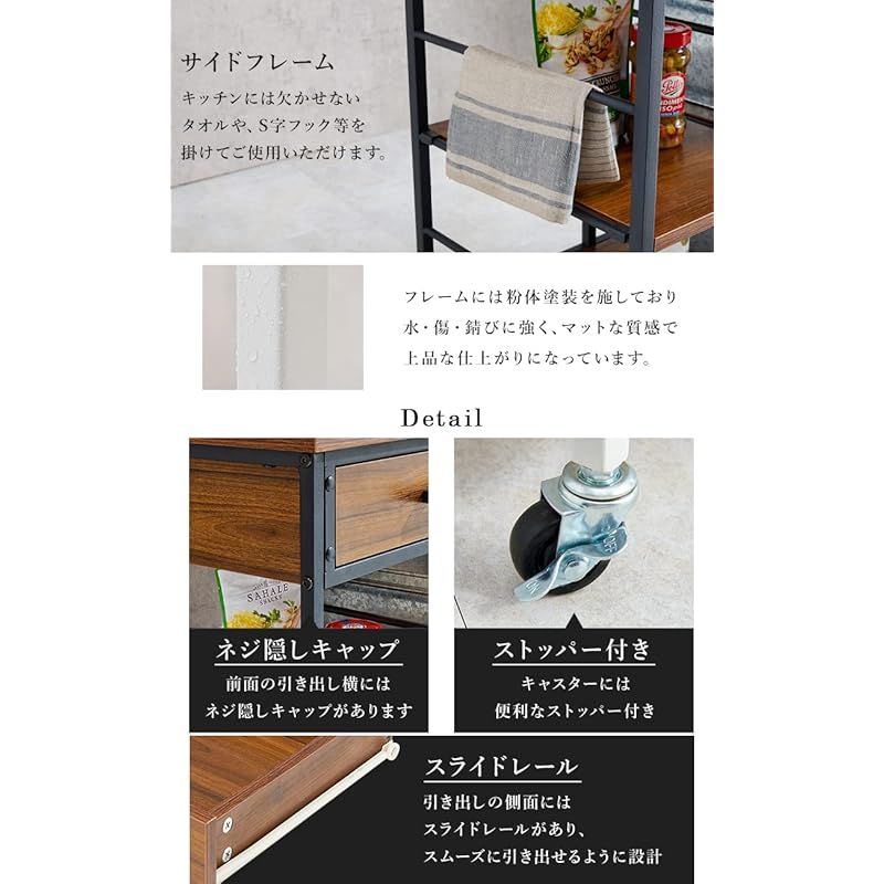 商品名:萩原(Hagihara) キッチンワゴン ラック メラミン天板 キャスター 引き出し 可動棚 付き 幅60 ブラウン 1台 LW-4530BR