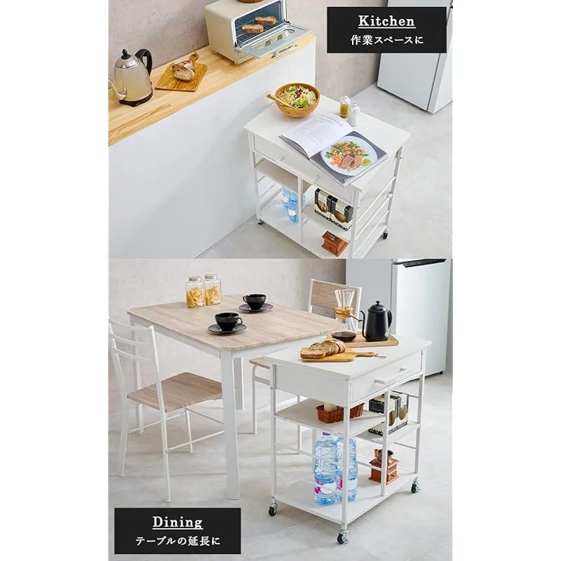 【補助テーブルとしても】キャスターつきなのでお掃除もしやすくキッチンからダイニングへの移動も可能。来客時にダイニングテーブルのスペースが足りない時にも活躍します
