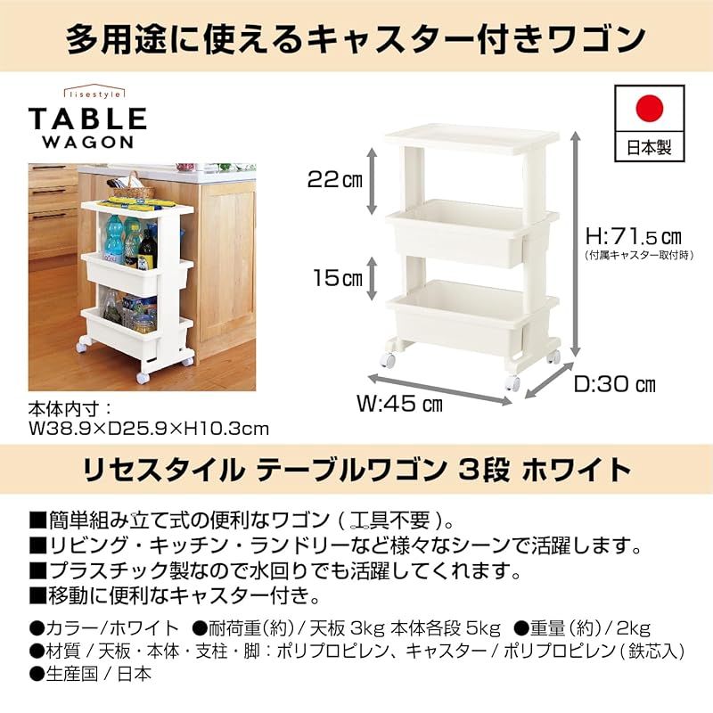 商品名:JEJアステージ(JEJ Astage) リセテーブルワゴン3段 ホワイト