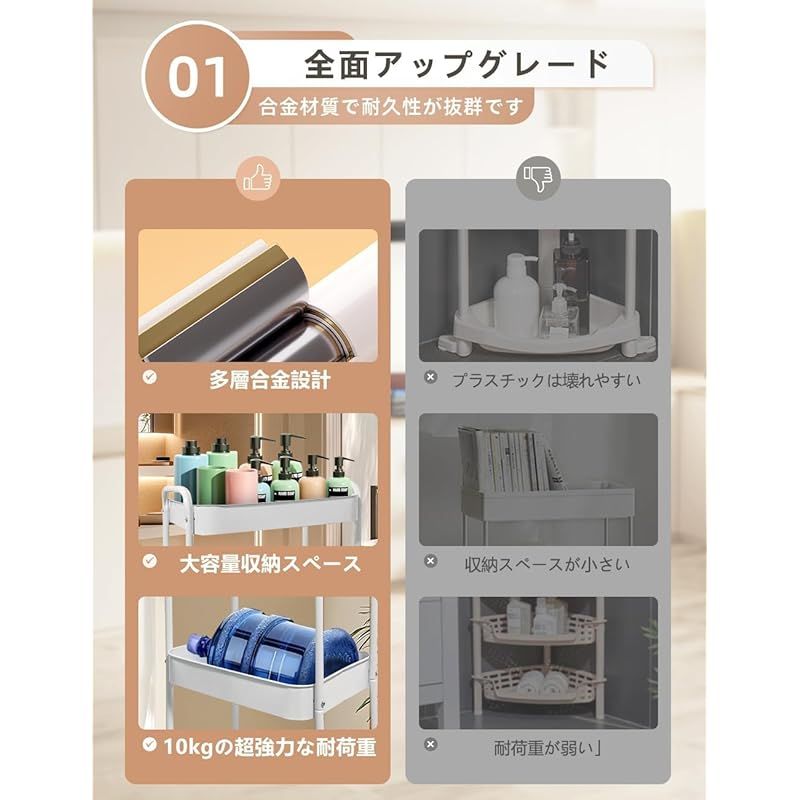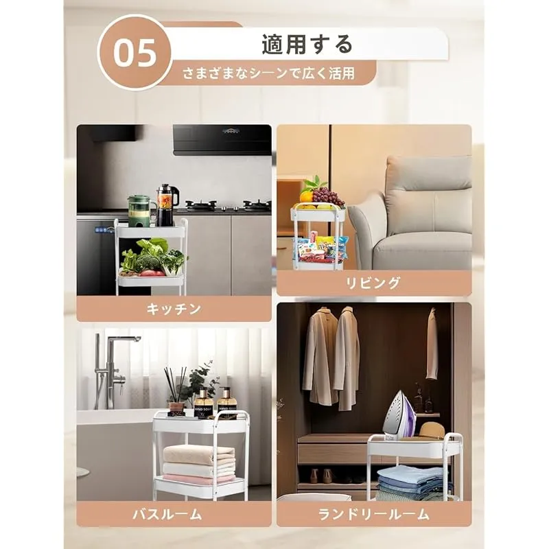 【多用途でおしゃれな3段構造】このラックは3段構造で、トイレ、寝室、リビングルーム、子供部屋、キッチン、書店、美容室など、あらゆる場所で活躍します。散らかりがちな小物や日用品、食品、雑貨などをしっかりと整理し、収納スペースを確保できます。シンプルでスタイリッシュなデザインは、どの部屋にも自然に溶け込み、インテリアとしても楽しむことができます。