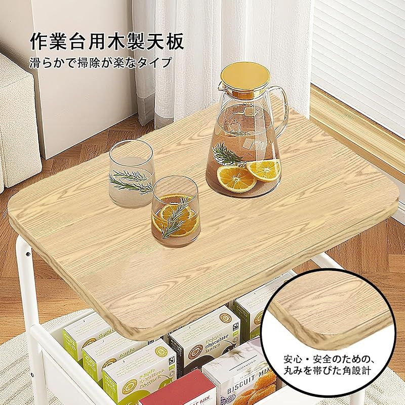 【作業台として使える天板】平坦で頑丈な天然木の天板は、キッチンでの調理補助台として、リビングでの簡易デスクとして、あるいはベッドサイドでの朝食トレーとしても大活躍です。すぐに移動させて、必要な場所ですぐに使える便利さが特徴です。