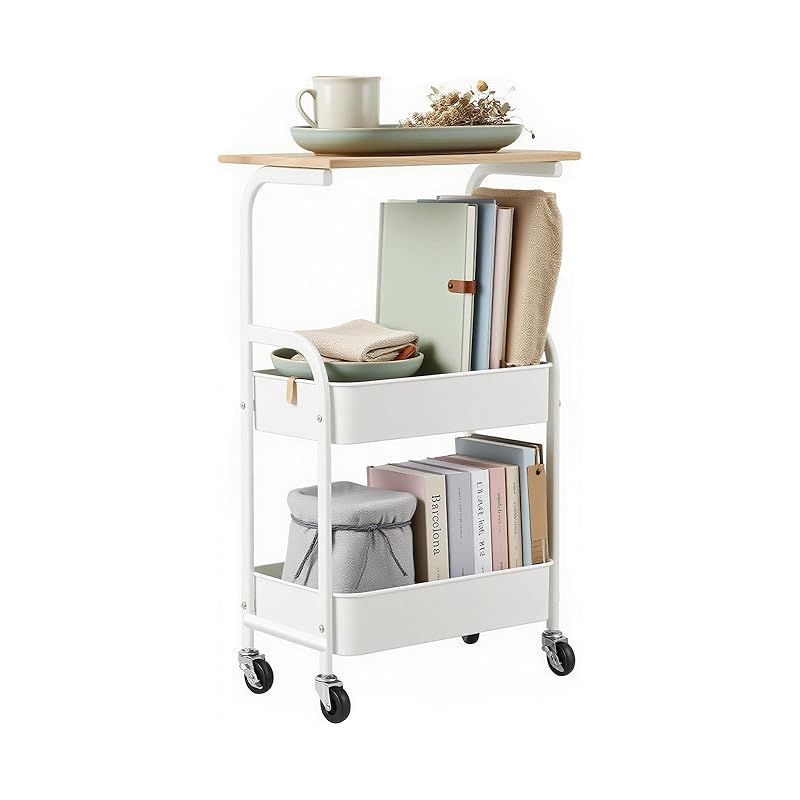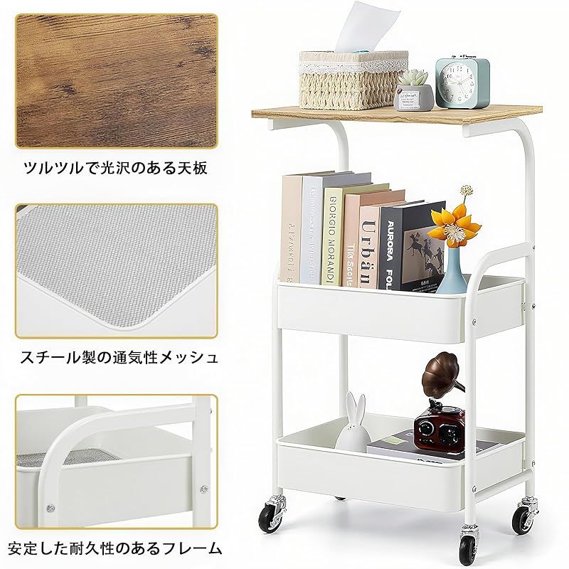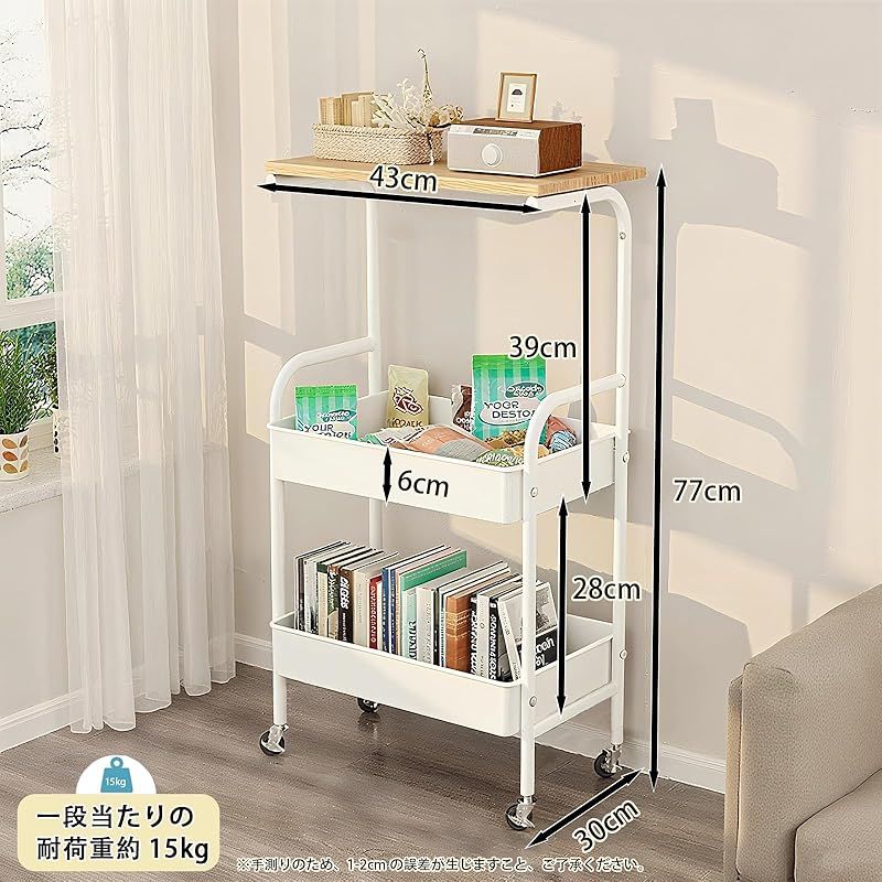 商品名:Sunhot 収納ワゴン キャスター付き 3段 キッチンワゴン 天板付き 幅30cm スキマラック スリム 隙間収納 小物収納 サイドワゴン スチール製 組立簡単 幅43×奥行30×高さ77 (ホワイト)