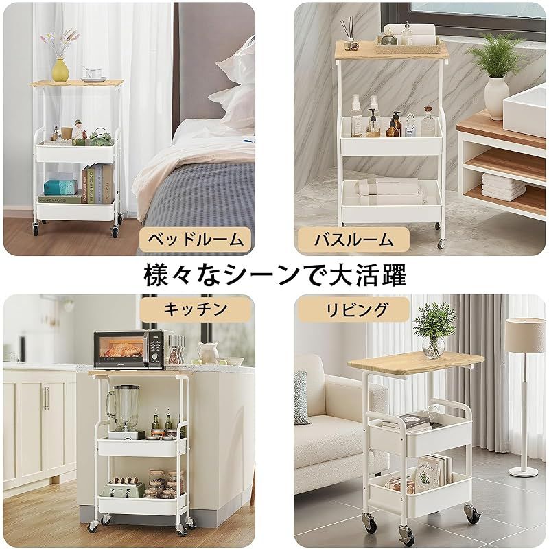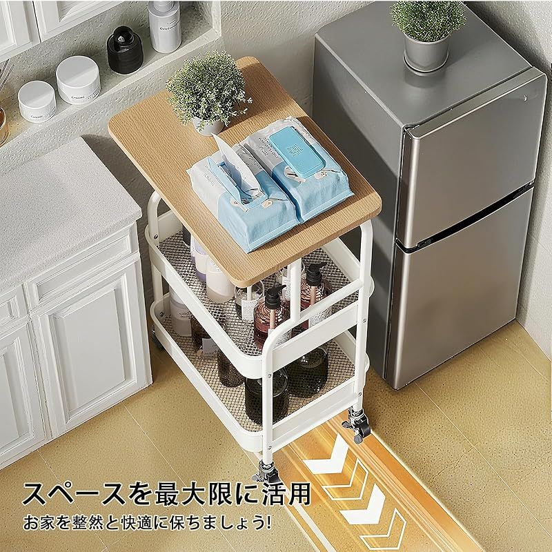 【どこでもマルチに活用】キッチンでは調味料や食品の収納に、リビングでは雑誌やリモコンの整理に、寝室ではコスメや小物の収納に。スリム設計でありながら、3段の大容量バスケットで様々なアイテムをすっきり整理できます。