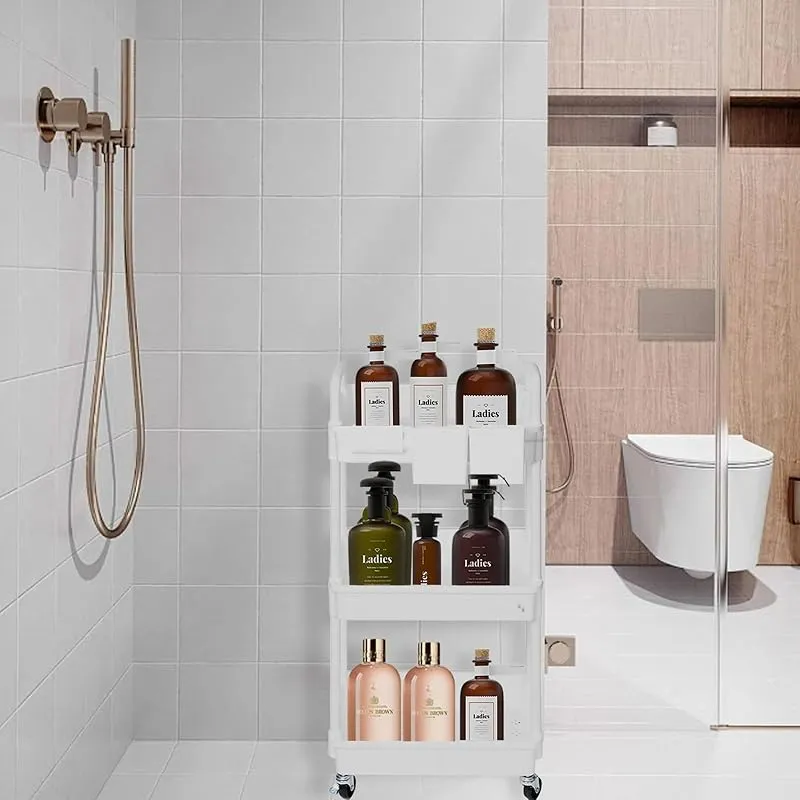キッチンワゴン ワゴン キャスター付き 3段 スリム 収納ワゴン 大容量 収納カート ハンドル/収納カップ付き ペットボトル収納 洗面所 台所 トイレ 浴室 冷蔵庫横 組立簡単 幅38×奥行27×高さ74cm