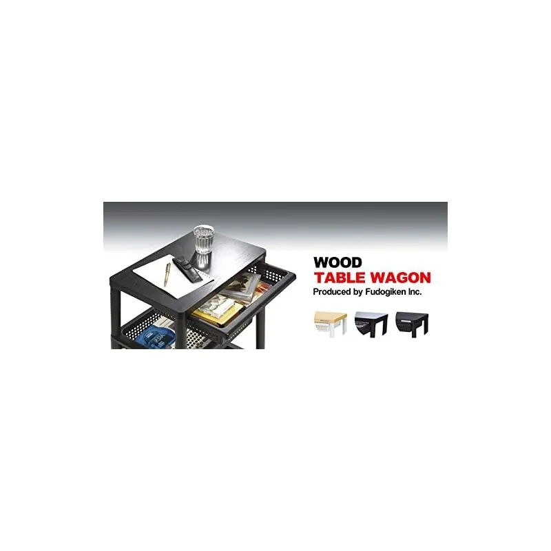 商品名:不動技研 ウッドテーブルワゴン WTW-3HS 引き出しバスケット付 ホワイト F2491