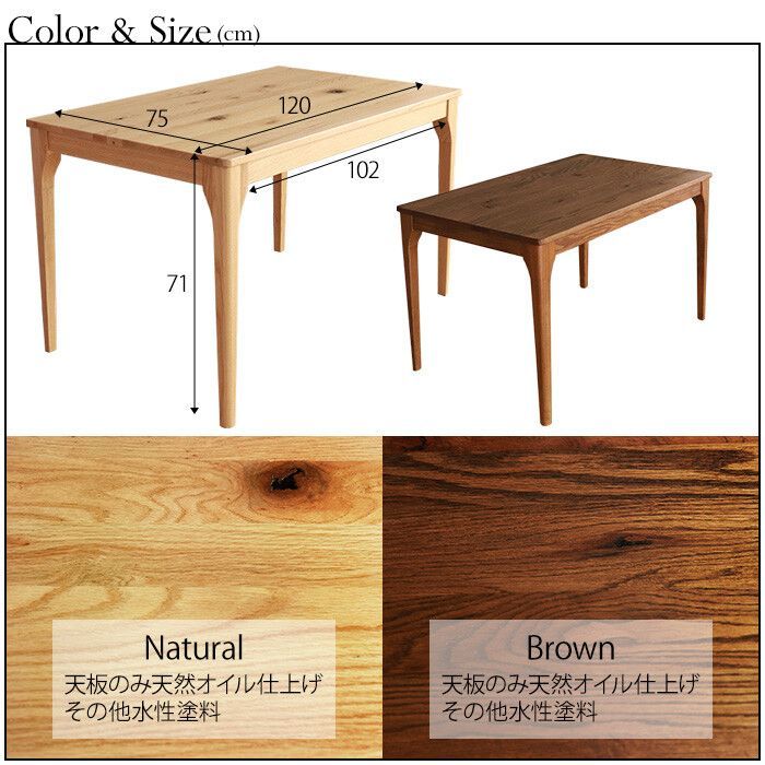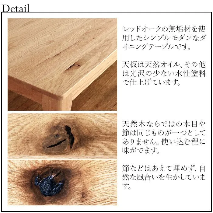 レッドオーク無垢材、天然オイル塗装(天板)、水性アクリル塗装(その他)