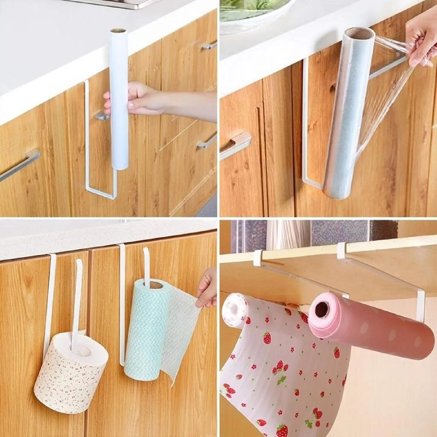 【キッチンペーパーホルダー】: このキッチンペーパーホルダー吊り戸棚の底板に穴をあけずにクリップで留められます。壁を傷つけないでください、取り外した後、痕跡は残っていません、小さなキッチンのスペースを節約するのに最適です。