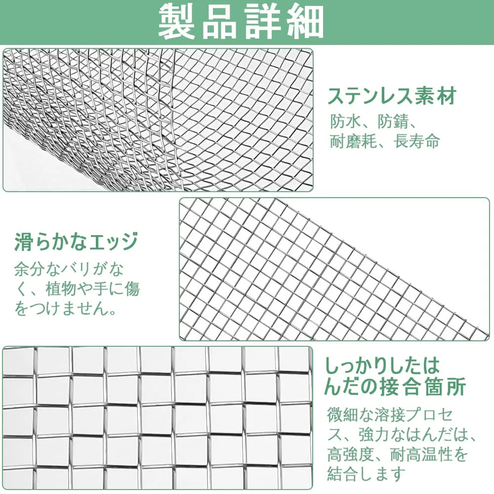 【使いやすさ】:金網は柔軟で耐久性があり、ニーズに応じて様々な形やサイズにカットでき、様々な使用シーンに適応します。屋内および屋外での使用に適しています。取り扱う際は、エッジに注意し、手を保護するために手袋を着用してください。