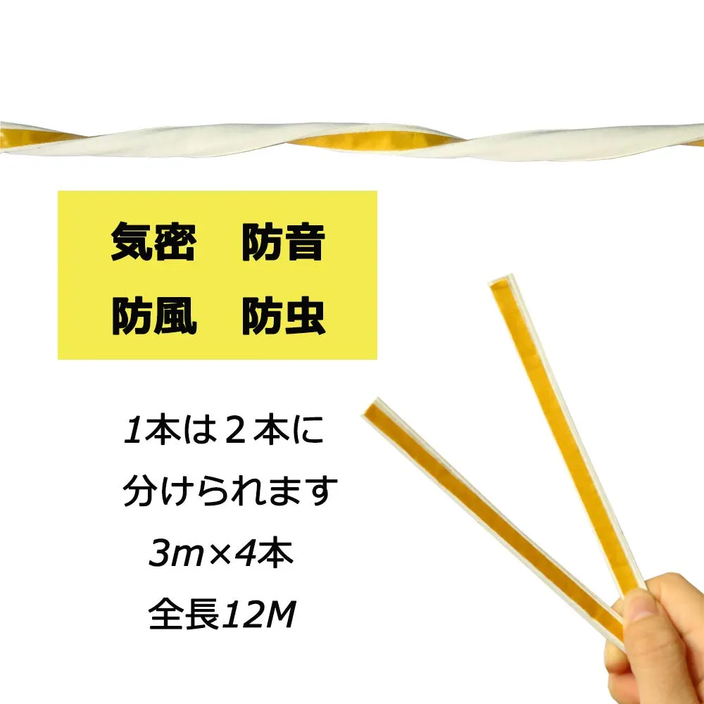 隙間テープ すきま風防止 気密 冷暖房効率アップ 窓 サッシ ドア 玄関 防音 防風 防虫 花粉 ホコリ侵入防止 戸あたり 省エネ 強力粘着 夏涼しい 冬暖かく 自動ドア D型 ホワイト 12m
