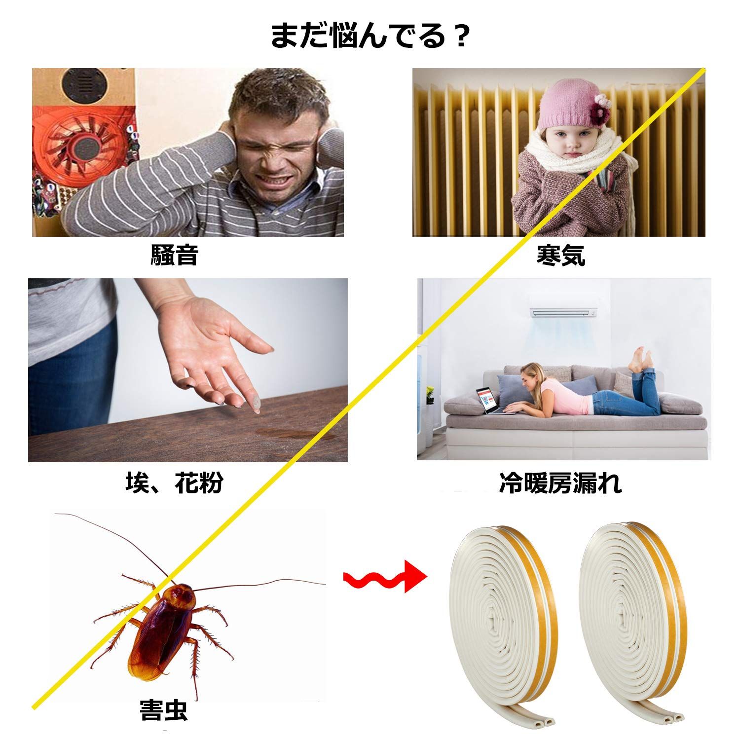 【多用途隙間テープ】窓やドアなどのすき間風をストップ、そして、開けると閉じる時の損害を減らします。トイレのドアに貼れば、便座から匂い漏れも激減。気密性が高いので、防音、防虫、埃防止、気密性アップなど様々なメリットがあって、幅広く使えます。