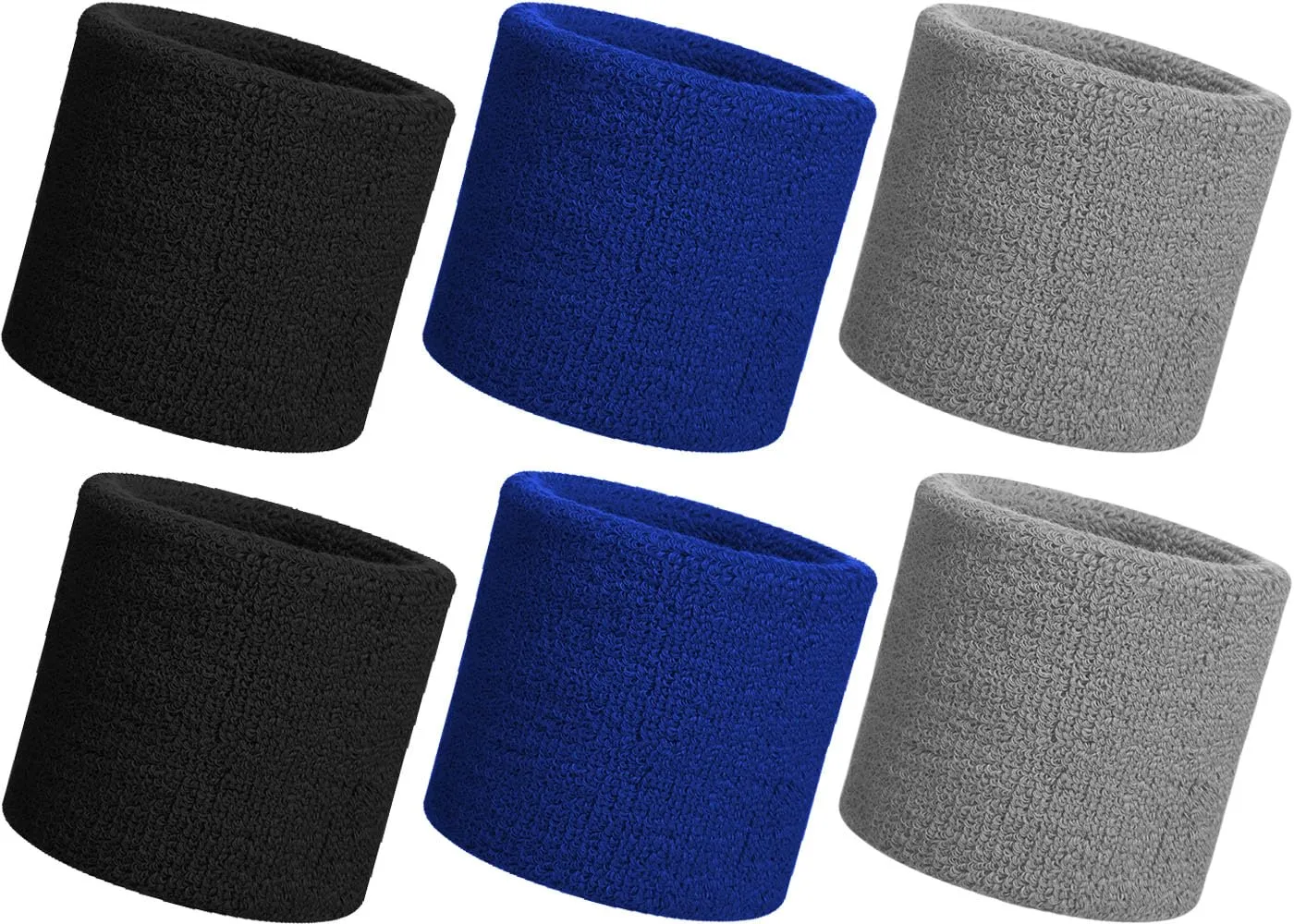 リストバンド 汗拭き スポーツ・洗顔用 テニス・バドミントン・ランニング対応 汗対策 吸水性 通気性 伸縮性 肌触り良し 手首バンド 手首サポーター 手首保護 リストガード リストカバー 男女兼用 8cm×8cm 6個セット