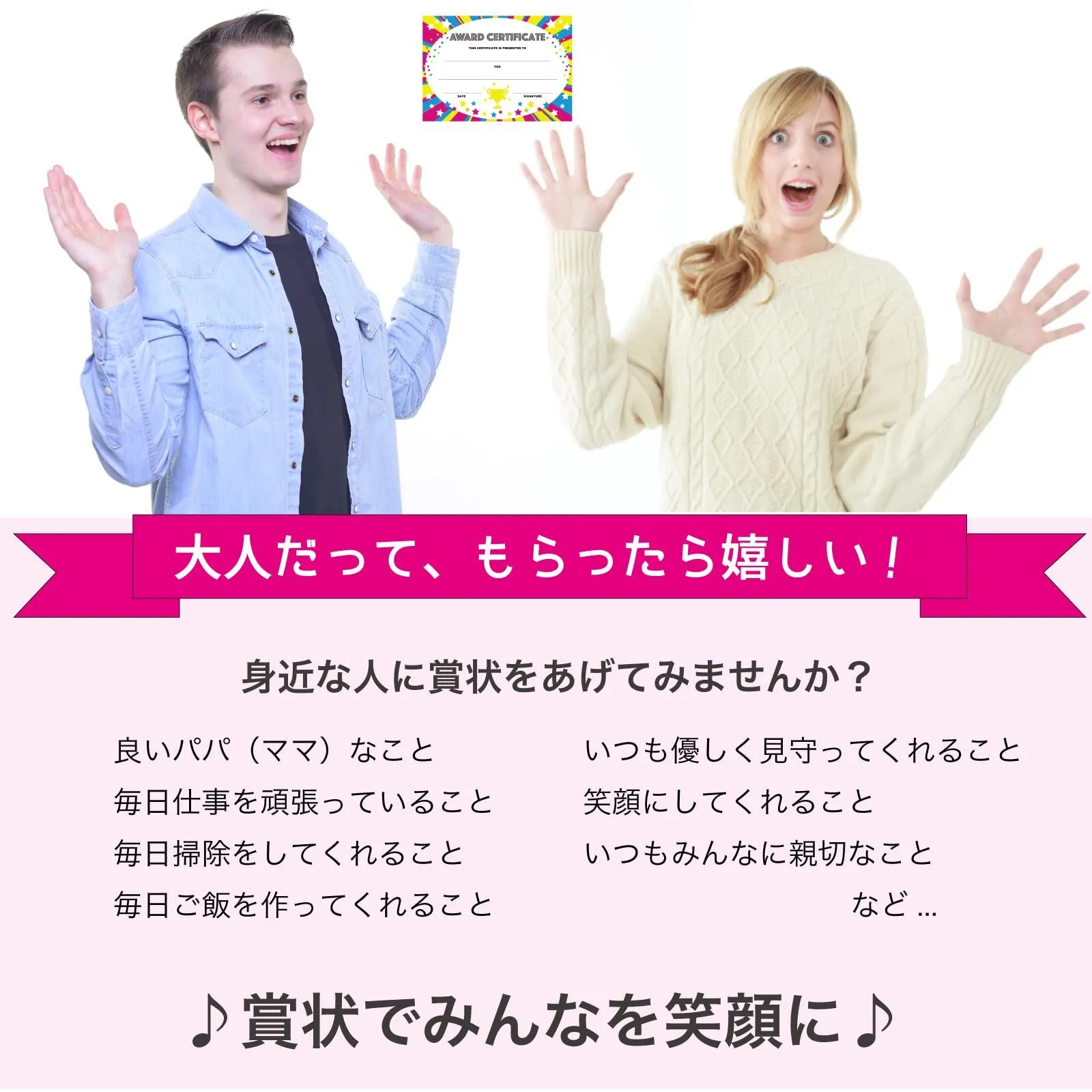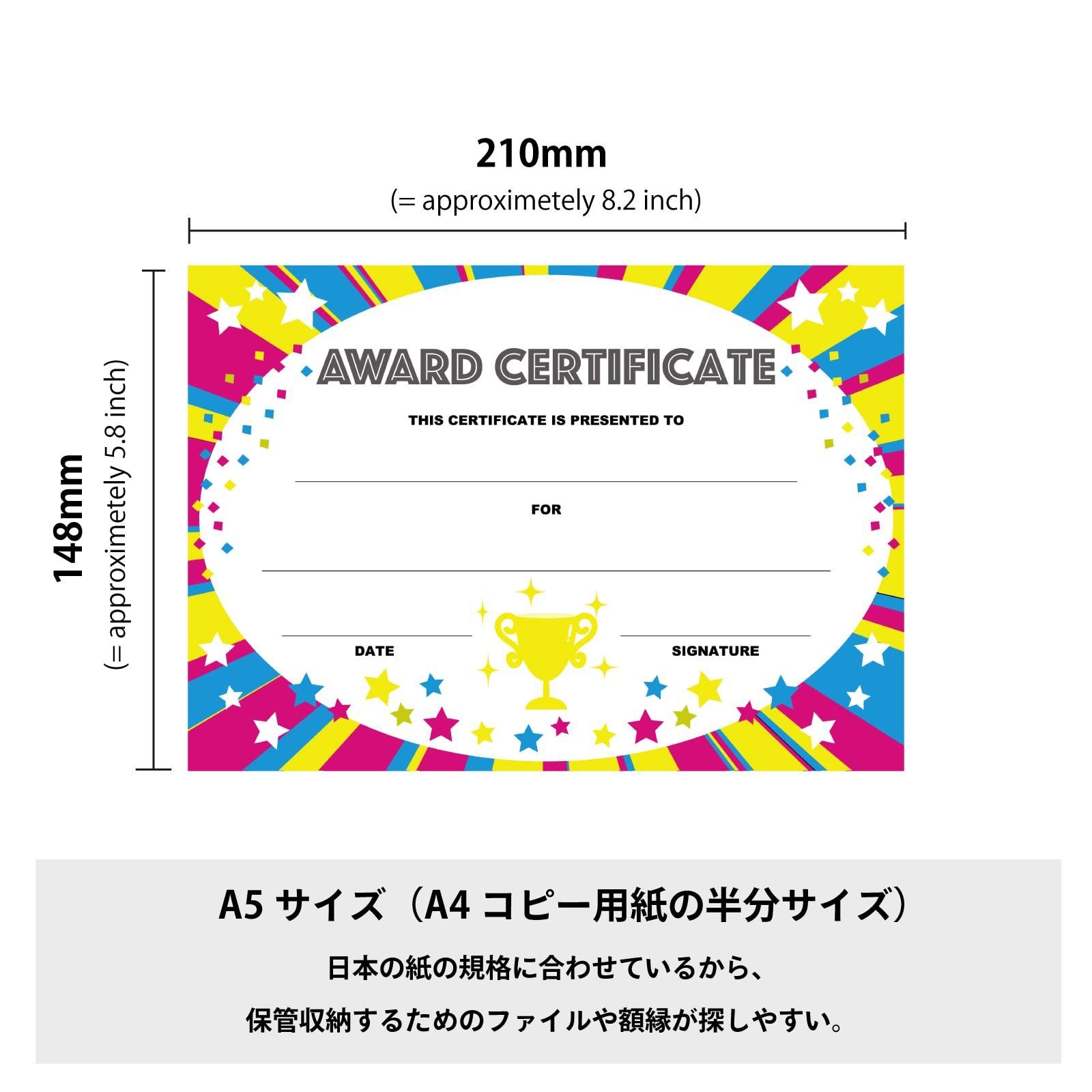 汎用性の高い「award certificate(賞状)」というタイトルだから、さまざまな場面で使える。