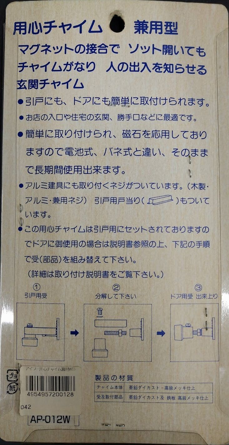 アイワ金属 用心チャイム AP-012W 廃盤品 パッケージに汚れ