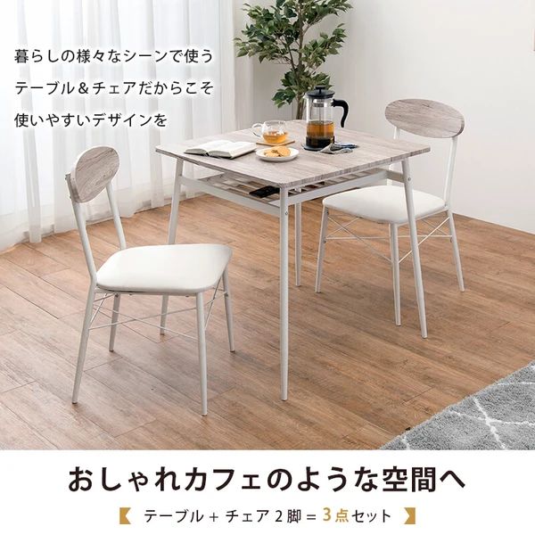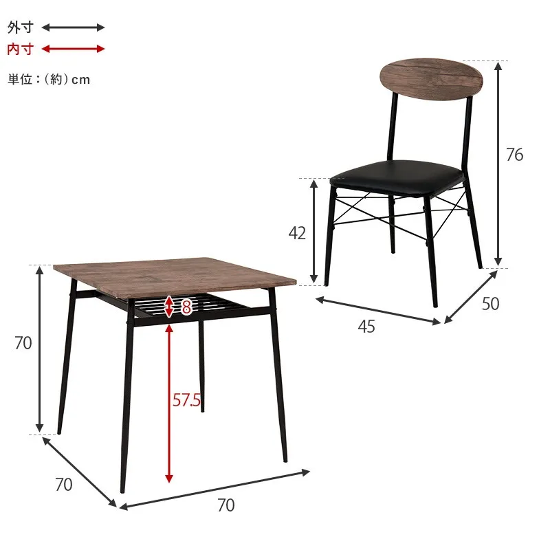 ■本体サイズ:テーブル:(約)幅70×奥行70×高さ70cmチェアー:(約)幅45×奥行50×高さ76×座面高42cm