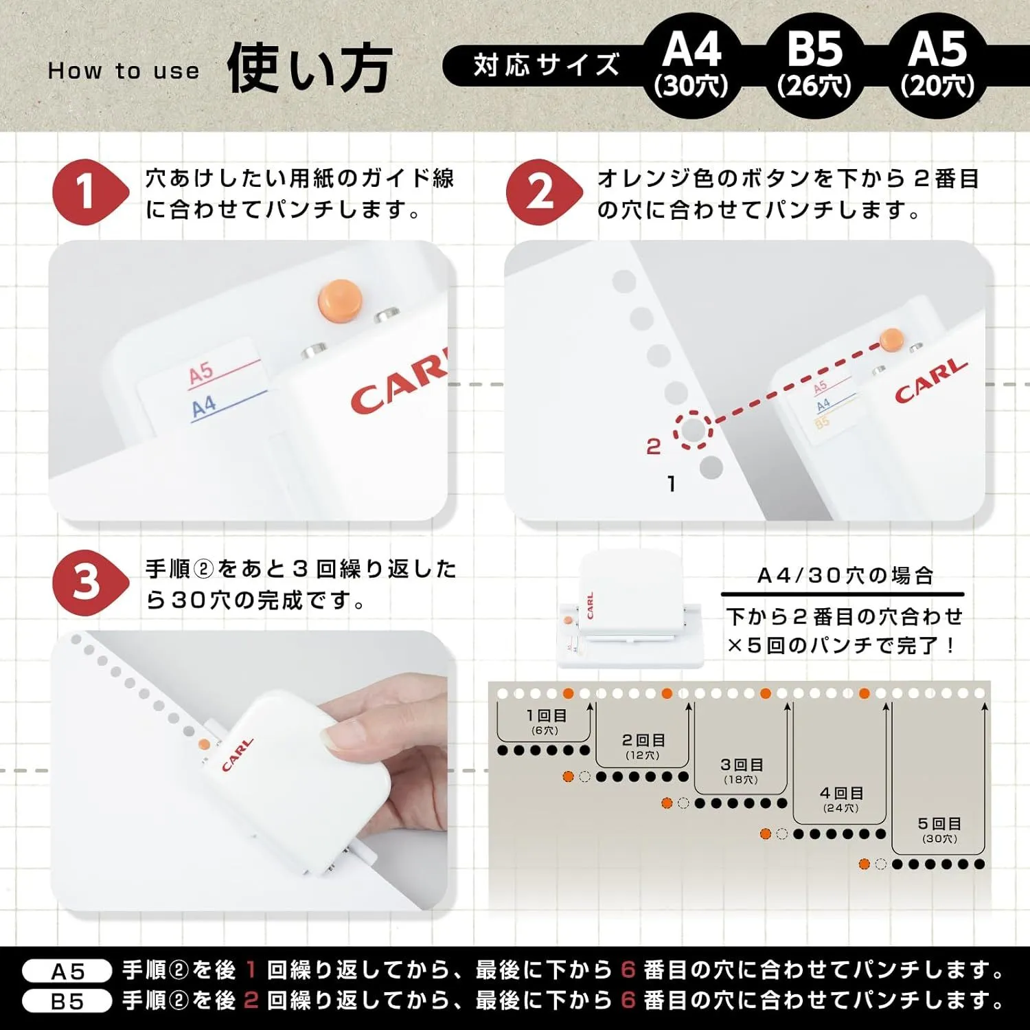 【対応サイズ】A4/30穴,B5/26穴,A5/20穴