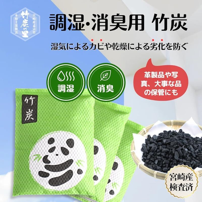 商品名:竹炭の里 調湿・消臭用竹炭 3個セット 宮崎県産竹炭 オーガニック孟宗竹 湿気によるカビや乾燥による劣化を防ぐ 革製品 紙製品 写真 精密機械 など湿気と乾燥に弱いモノの保管に くり返し使える