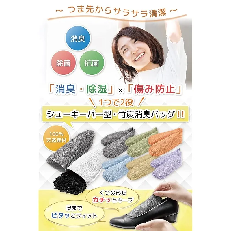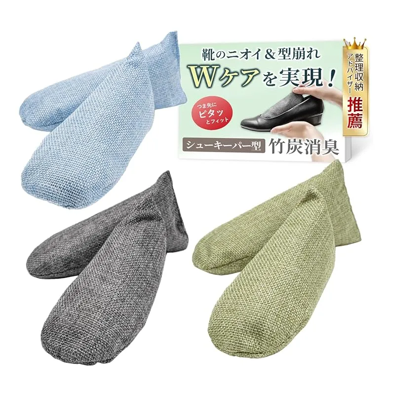 【お掃除・収納のプロが推薦】 靴 消臭 除湿 シューキーパー型 竹炭 消臭剤 下駄箱消臭 ハナマル良品 (マルチカラー/3足セット)