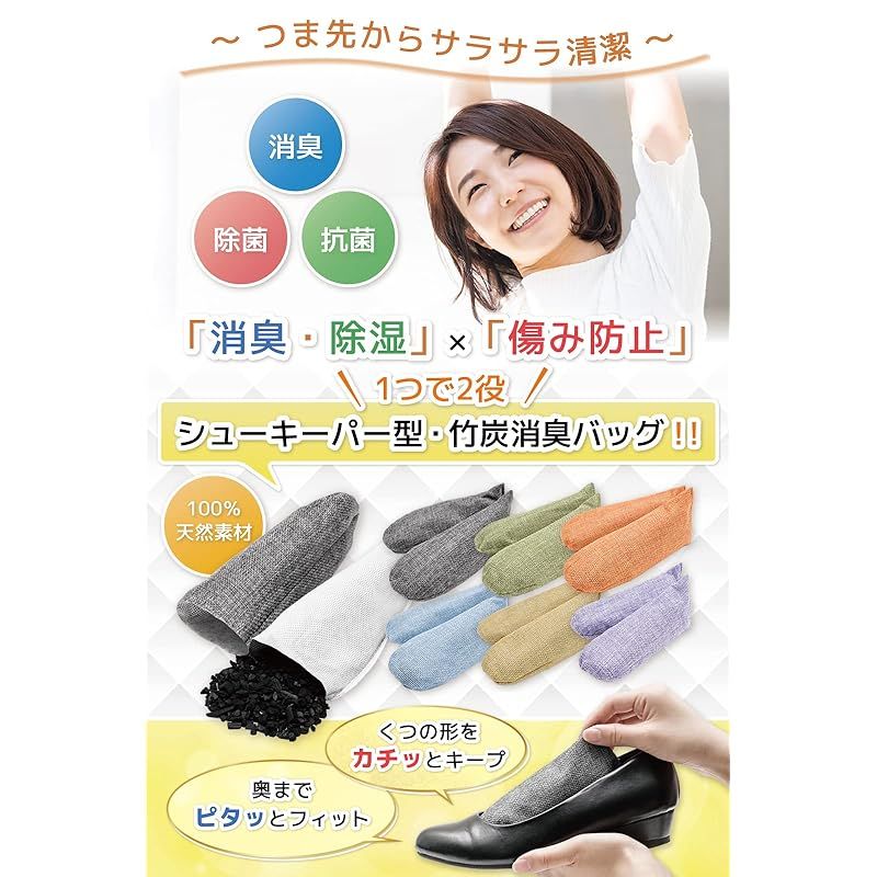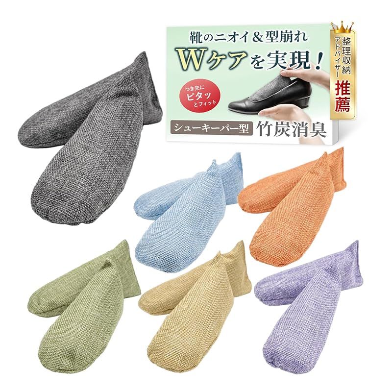 【お掃除・収納のプロが推薦】 靴 消臭 除湿 シューキーパー型 竹炭 消臭剤 下駄箱消臭 ハナマル良品 (マルチカラー/6足セット)