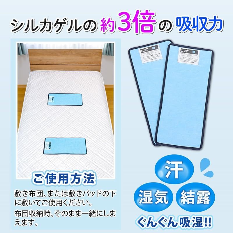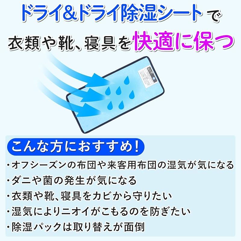 【高吸湿な特殊繊維で湿気をぐんぐん吸収】:シリカゲルの約2~3倍の吸湿性がある特殊繊維を使用。クローゼット内やハンガーに掛けてぐんぐん除湿。